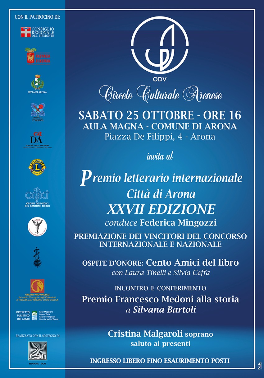 Sabato 25 ottobre alle ore 16:00 si terrà l’evento Premio letterario internazionale XXVII Ed. con la premiazione dei vincitori del concorso internazionale e nazionale.