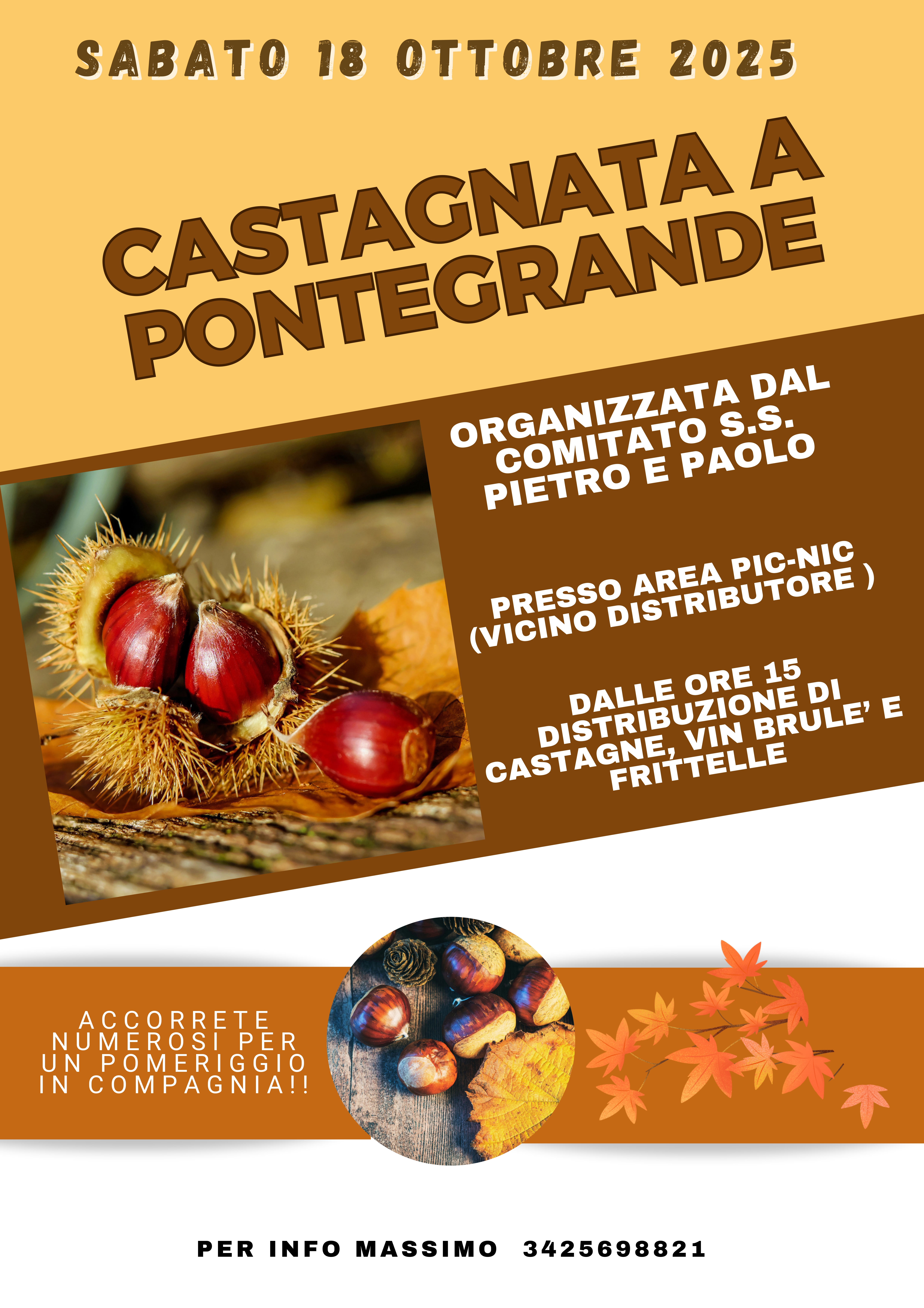 Castagnata a Pontegrande, sabato 18/10/2025 dalle ore 15:00 alle ore 18:00