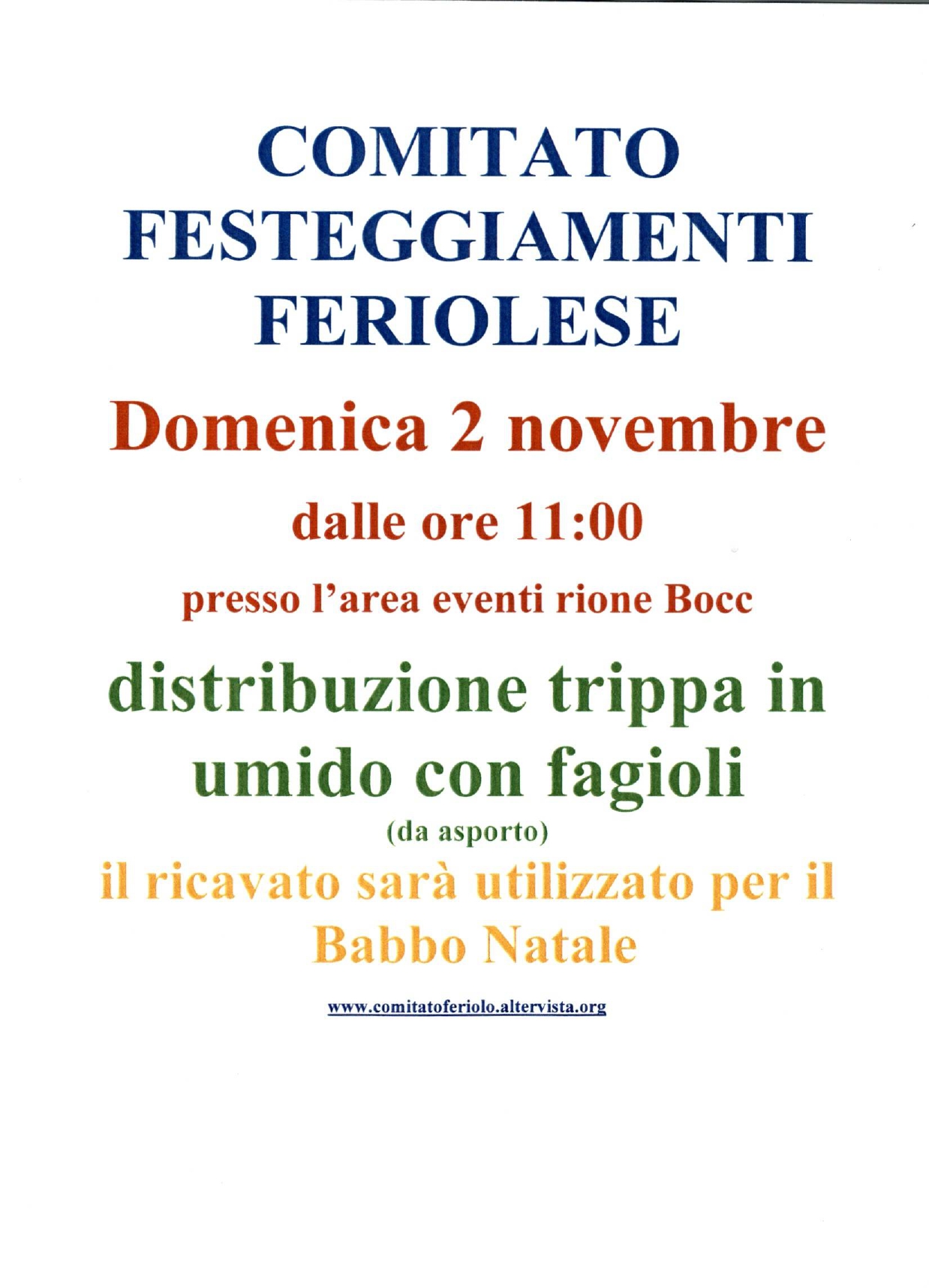 Domenica 2 novembre 2025 dalle ore 11.00 distribuzione trippa in umido con fagioli (da asporto).