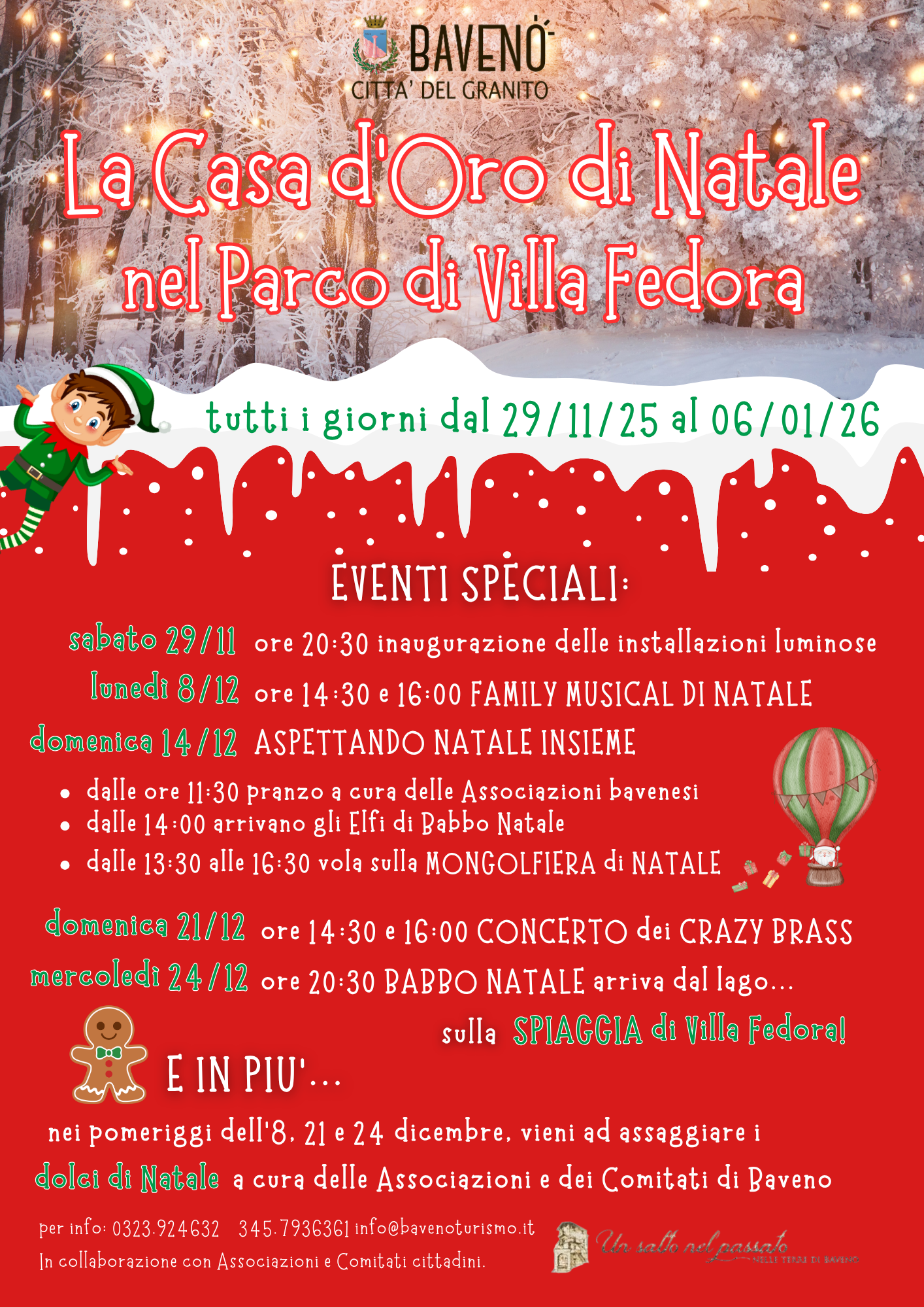 Il parco di Villa Fedora si trasforma in un luogo magico, con installazioni luminose, postazioni per selfie natalizi, musica, animazioni, spettacoli a tema…e molto altro ancora La Casa d’Oro di Natale!