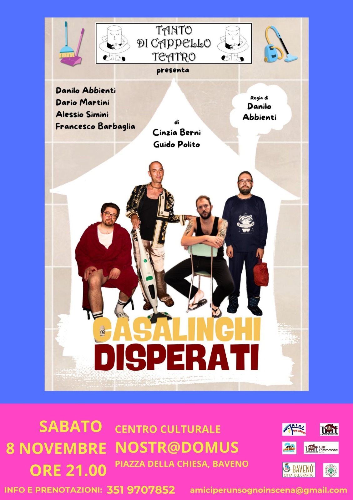 Sabato 8 novembre, ore 21:00 presso Centro culturale Nostr@domus si terrà “Casalinghi disperati”, compagnia Tanto di Cappello (Pernate, NO)