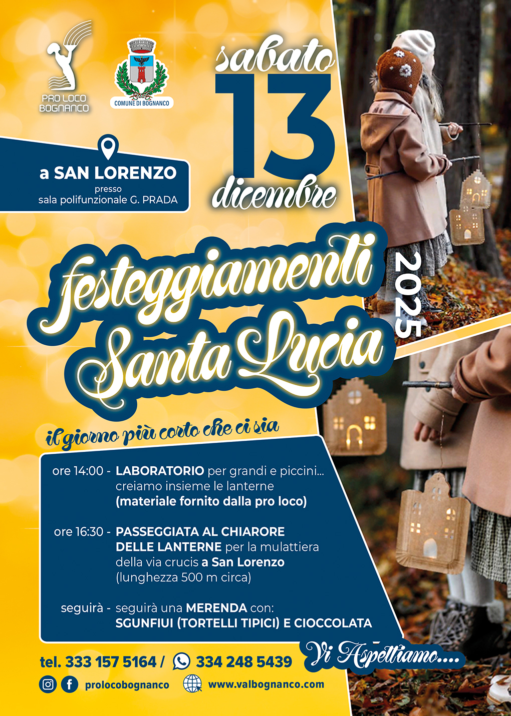 Sabato 13 dicembre dalle ore 14:00 si festeggia la festa di Santa Lucia con laboratorio per grandi e piccini, a seguire passeggiata al chiarore delle lanterne e merenda per tutti!
