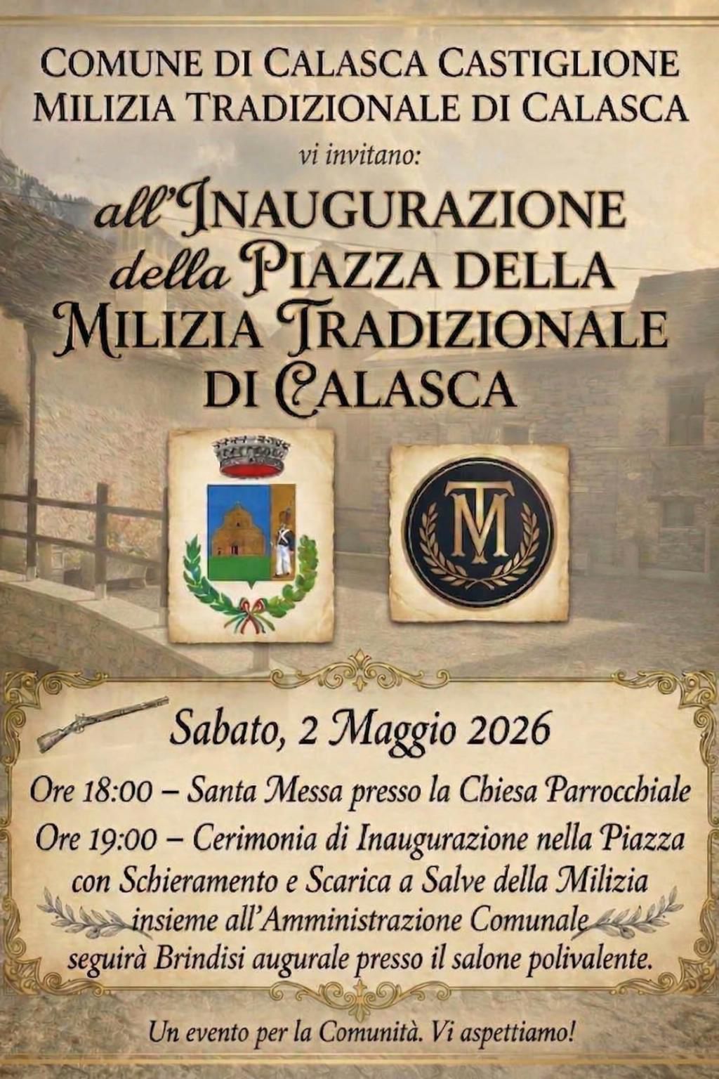 Sabato 2 maggio ci sarà l’inaugurazione della Milizia Tradizionale di Calasca: una rievocazione storica piena di tradizione e memoria.