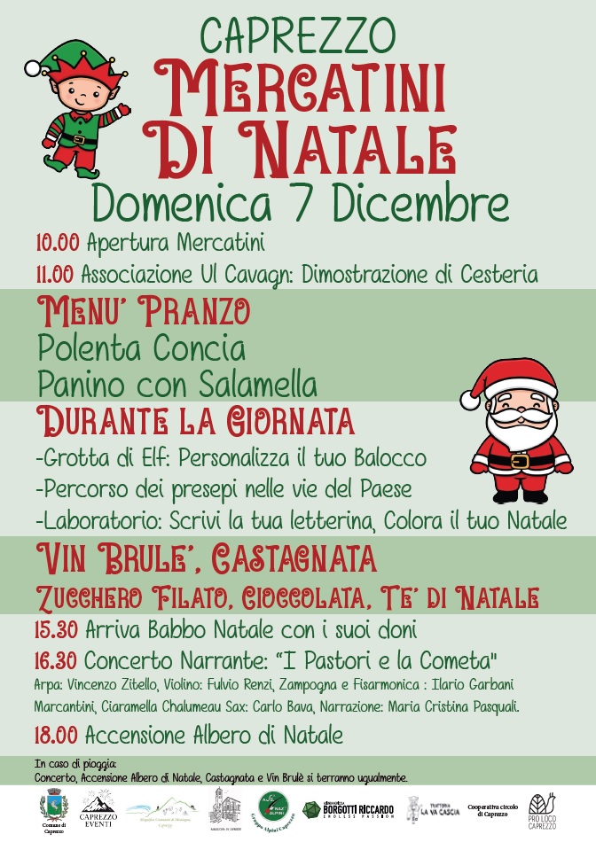 Alle 10.00 apertura dei tradizionali Mercatini di Natale e per tutta la giornata laboratori per bambini, percorso dei Presepi nelle Vie del Paese e molto altro ancora…