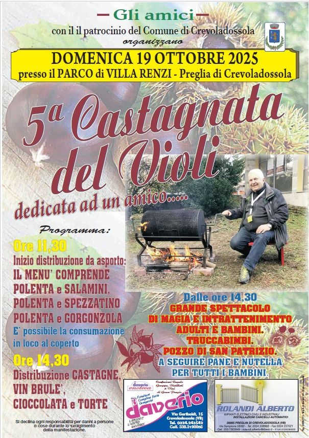 Polenta, salamini, castagne, vin brulè, spettacolo di magia e intrattenimento per adulti e bambini!