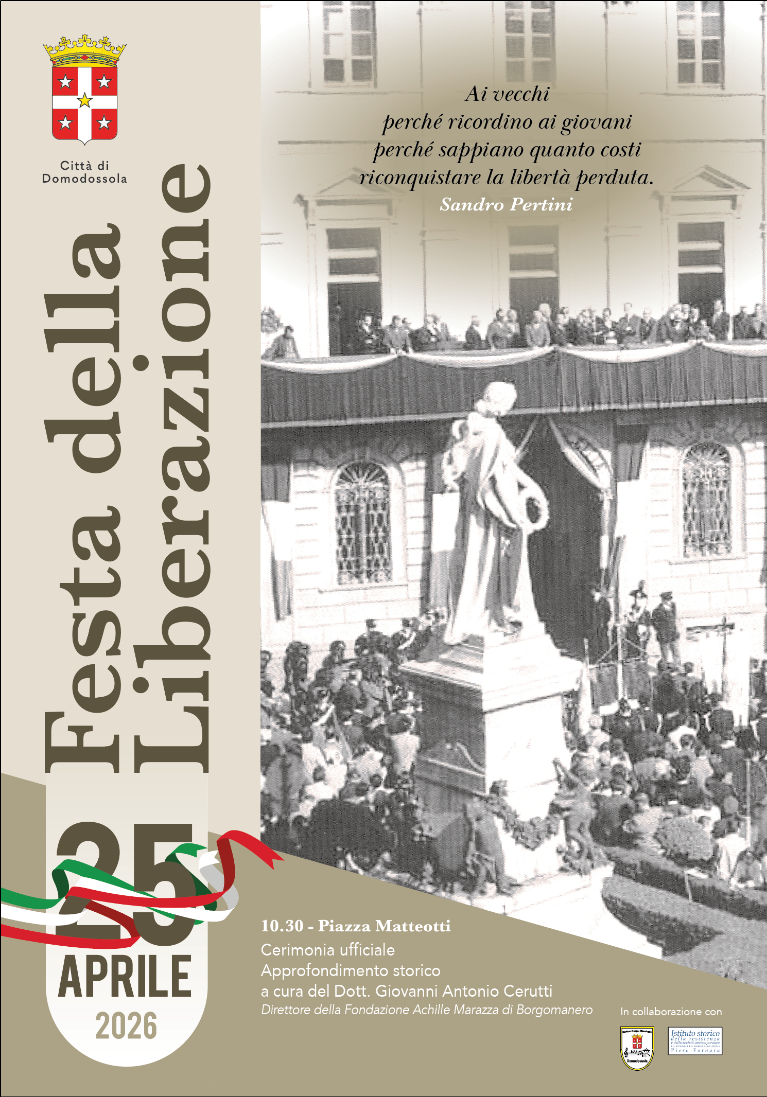 Sabato 25 aprile alle ore 10:30 in Piazza Matteotti si celebra la cerimonia ufficiale per la “Festa della Liberazione 2026”