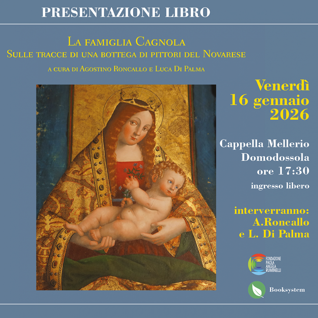Sarà la Cappella Mellerio di Domodossola ad ospitare venerdì 16 gennaio alle ore 17.30 l’incontro che la Fondazione Paola Angela Ruminelli e l’Associazione Culturale Mario Ruminelli dedicano alla presentazione del libro “La famiglia Cagnola. Sulle tracce di una bottega di pittori del Novarese” (Edizioni Booksystem), a cura di Agostino Roncallo e Luca Di Palma.