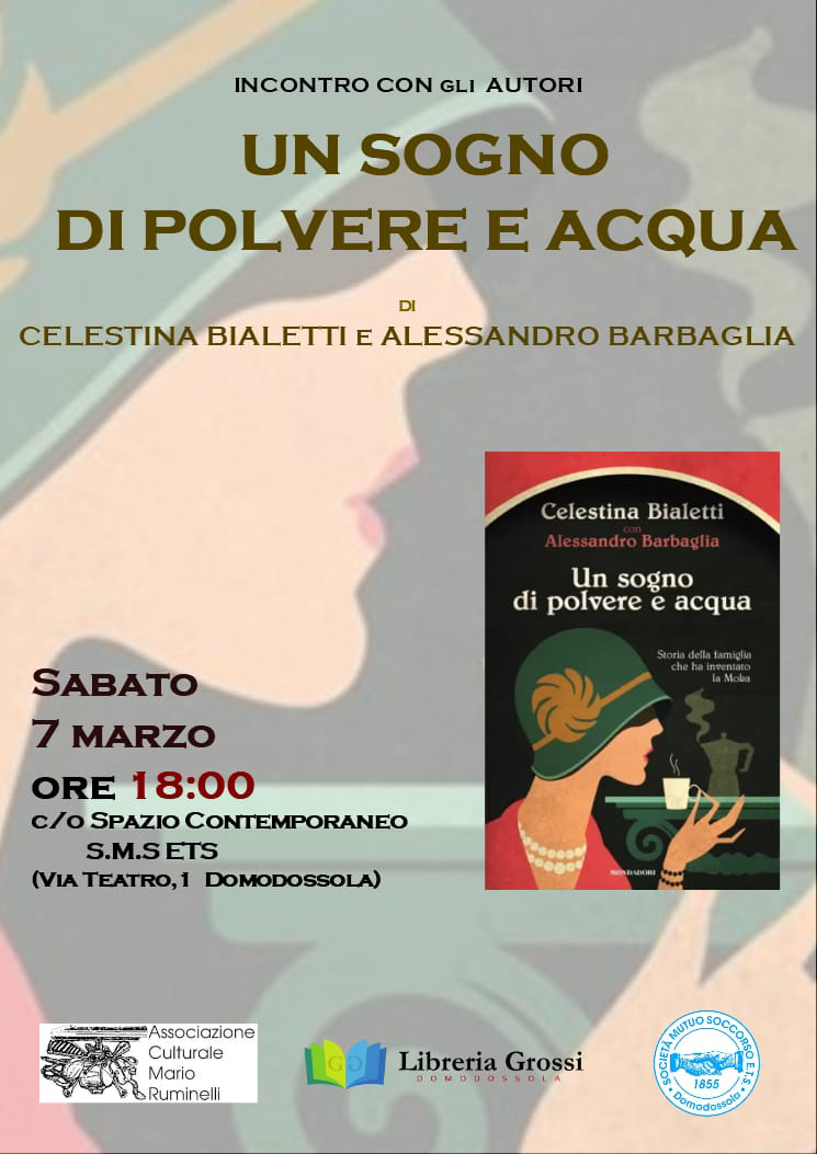 Sabato 7 marzo alle ore 18.00 allo Spazio Contemporaneo della Società di Mutuo Soccorso di Domodossola gli autori, Celestina Bialetti e Alessandro Barbaglia, presenteranno il libro “Un sogno di polvere e acqua” edito da Mondadori