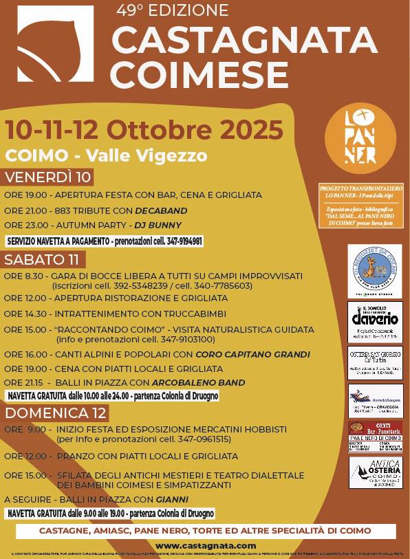 Con questa allegra e spensierata festa autunnale, Coimo rende omaggio alla castagna, umile, ma prezioso frutto di montagna.