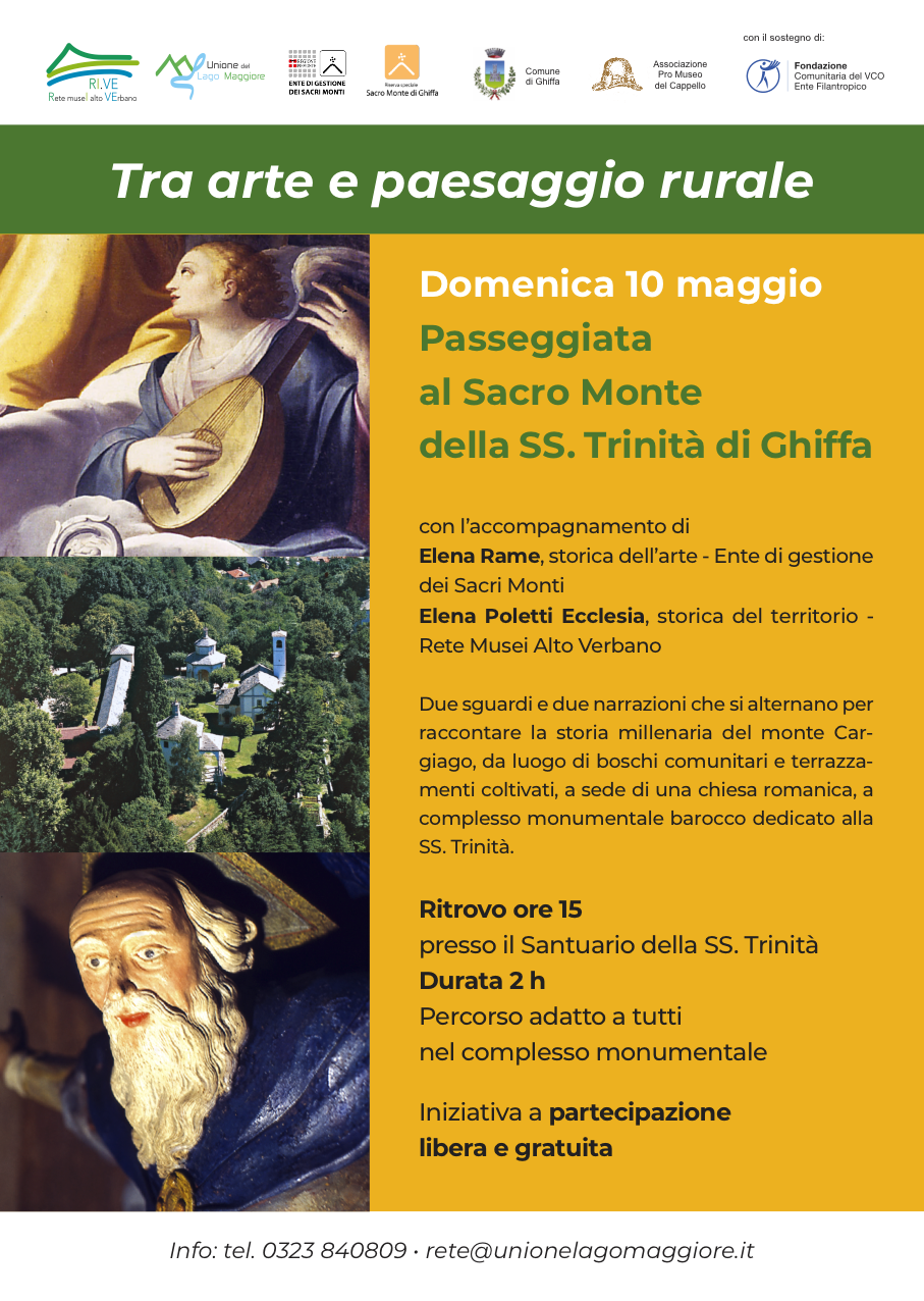 Domenica 10 maggio, l’ente di gestione dei Sacri Monti e la Rete Musei Alto Verbano propongono  una passeggiata “Tra arte e paesaggio rurale” alla scoperta del Sacro Monte della SS. Trinità di Ghiffa.