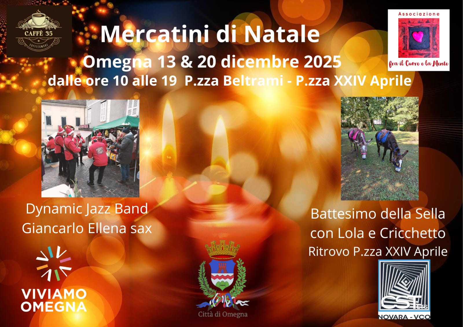 Sabato 13 e sabato 20 dicembre, tornano i mercati di Natale di Omegna in Piazza Beltrami e Piazza XXIV Aprile dalle 10.00 alle 19.00, organizzati dall’Associazione Tra Il Cuore e la Mente.