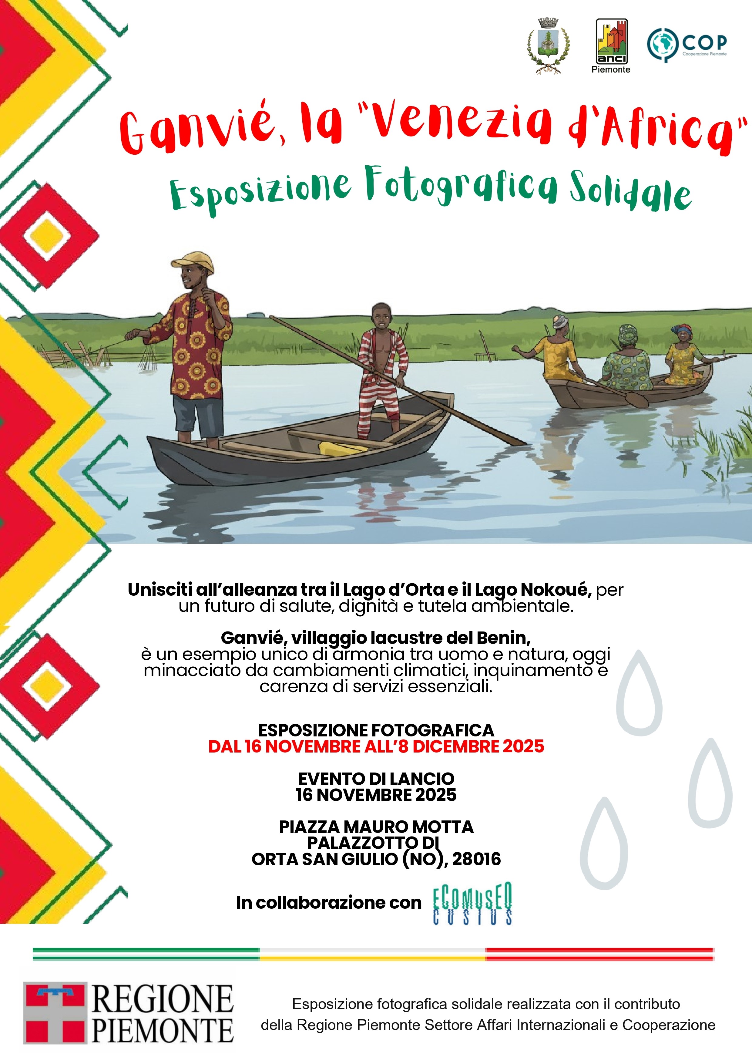 L’esposizione che sarà inaugurata il prossimo 16 novembre intende valorizzare la collaborazione avviata tra il Comune di Orta San Giulio e quello di So-Ava in Benin, trasformando l’incontro tra il Lago d’Orta e il Lago Nokoué in un simbolo di solidarietà ambientale. Con la sua storia straordinaria, il bacino novarese costituisce un modello di rinascita ambientale unico al mondo e si candida ora ad assumere il ruolo di “padrino” nei confronti del lago africano, una risorsa vitale per milioni di persone e per l’intero ecosistema, dove sorge il meraviglioso villaggio palafitticolo di Ganvié, ribattezzato la “Venezia d’Africa”.