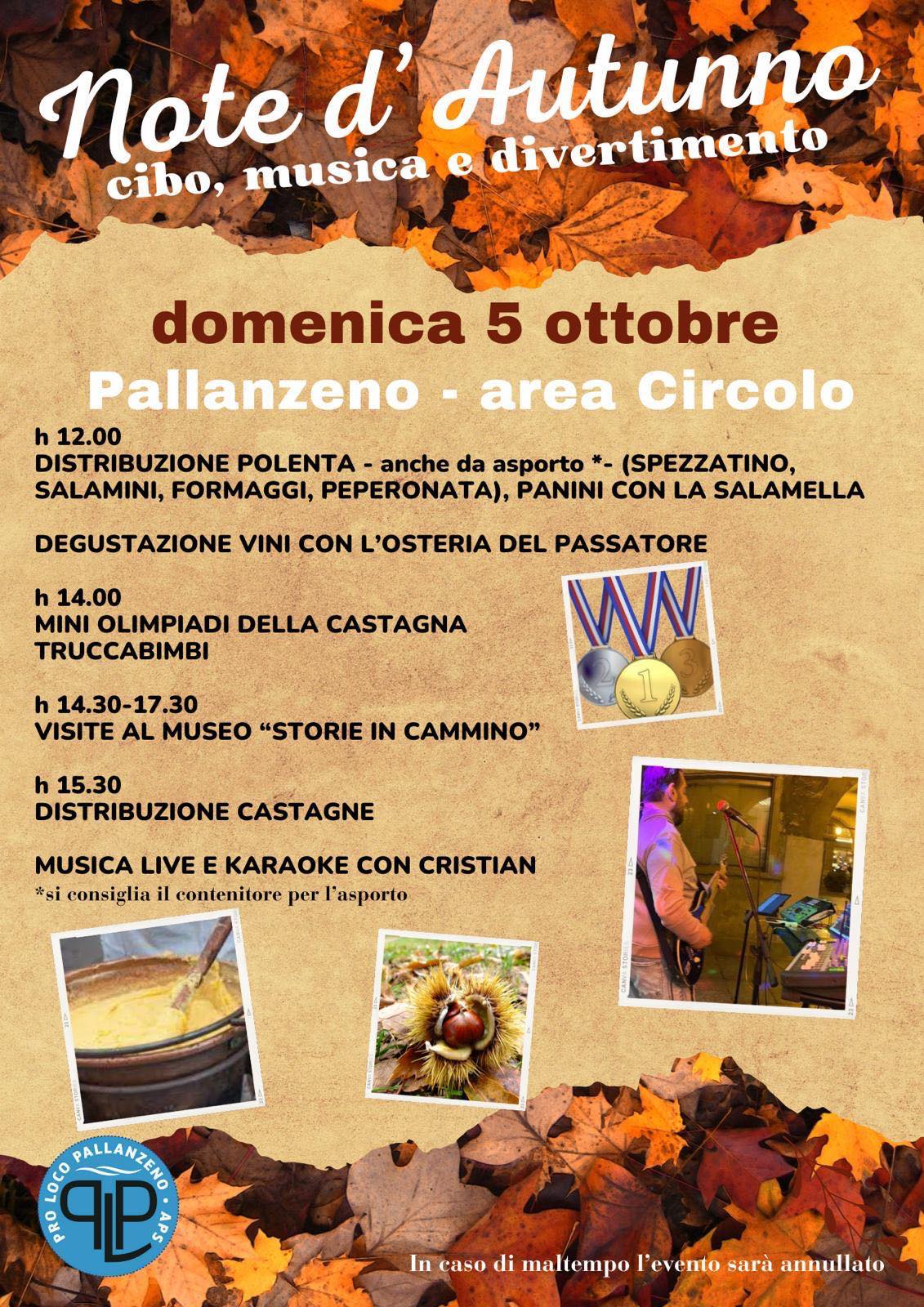 Domenica 5 Ottobre dalle ore 12:00 si terrà Note d’Autunno con polenta e degustazione vini, mini olimpiadi, visite al museo e distribuzione delle castagne, musica e karaoke.