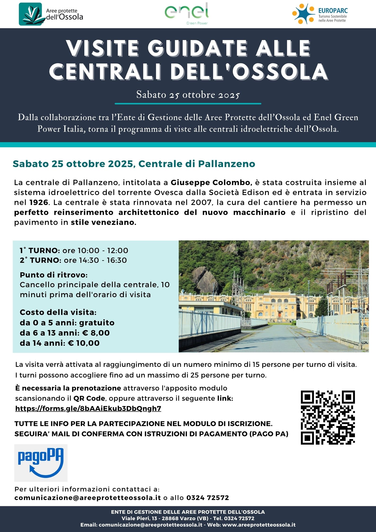 La stagione di visite alle centrali elettriche dell’Ossola arriva alla fine con un ultimo appuntamento autunnale per sabato 25 ottobre presso la Centrale di Pallanzeno.