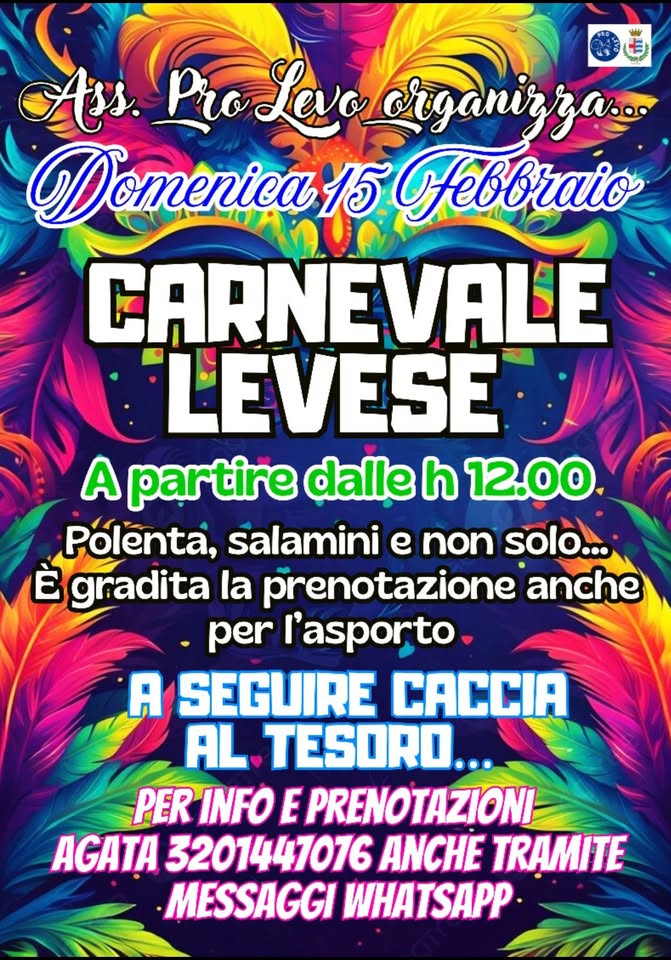 IL CARNEVALE DI LEVO con polentata e specialità della cucina Levese a cura della Pro Levo. A seguire caccia al tesoro.