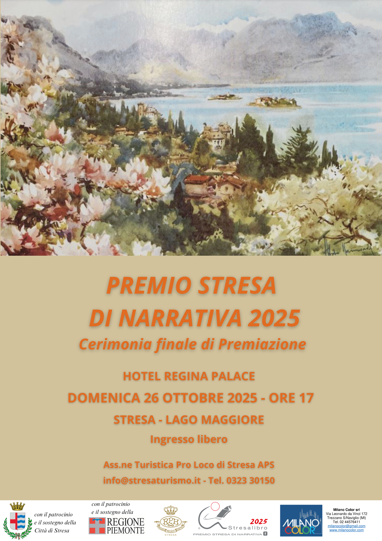 Domenica 26 ottobre alle ore 17.00 presso Hotel Regina Palace, si terrà Cerimonia Finale Premio Stresa di Narrativa 2025.