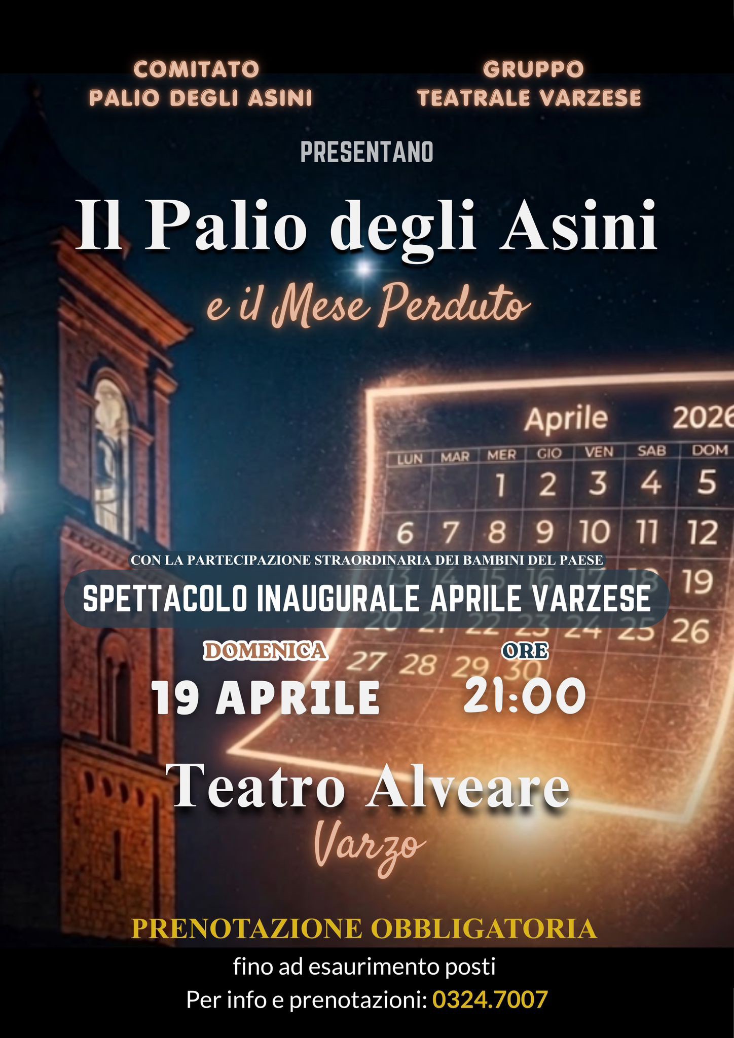 Domenica 19 Aprile 2026 alle ore 21:00 presso il Teatro Alveare si terrà lo spettacolo Il Palio degli Asini.
