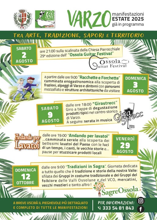 La Sagra delle tradizioni, o Tradizioni in Sagra è nata come evoluzione della sagra “A scarium” e ha visto la sua prima edizione il 10 Ottobre 2023 su organizzazione della Proloco, che ha pensato di raccogliere in una giornata il vasto patrimonio tradizionale della Valle Divedro con l’ intenzione di riscoprirlo e tramandarlo alle nuove generazioni.