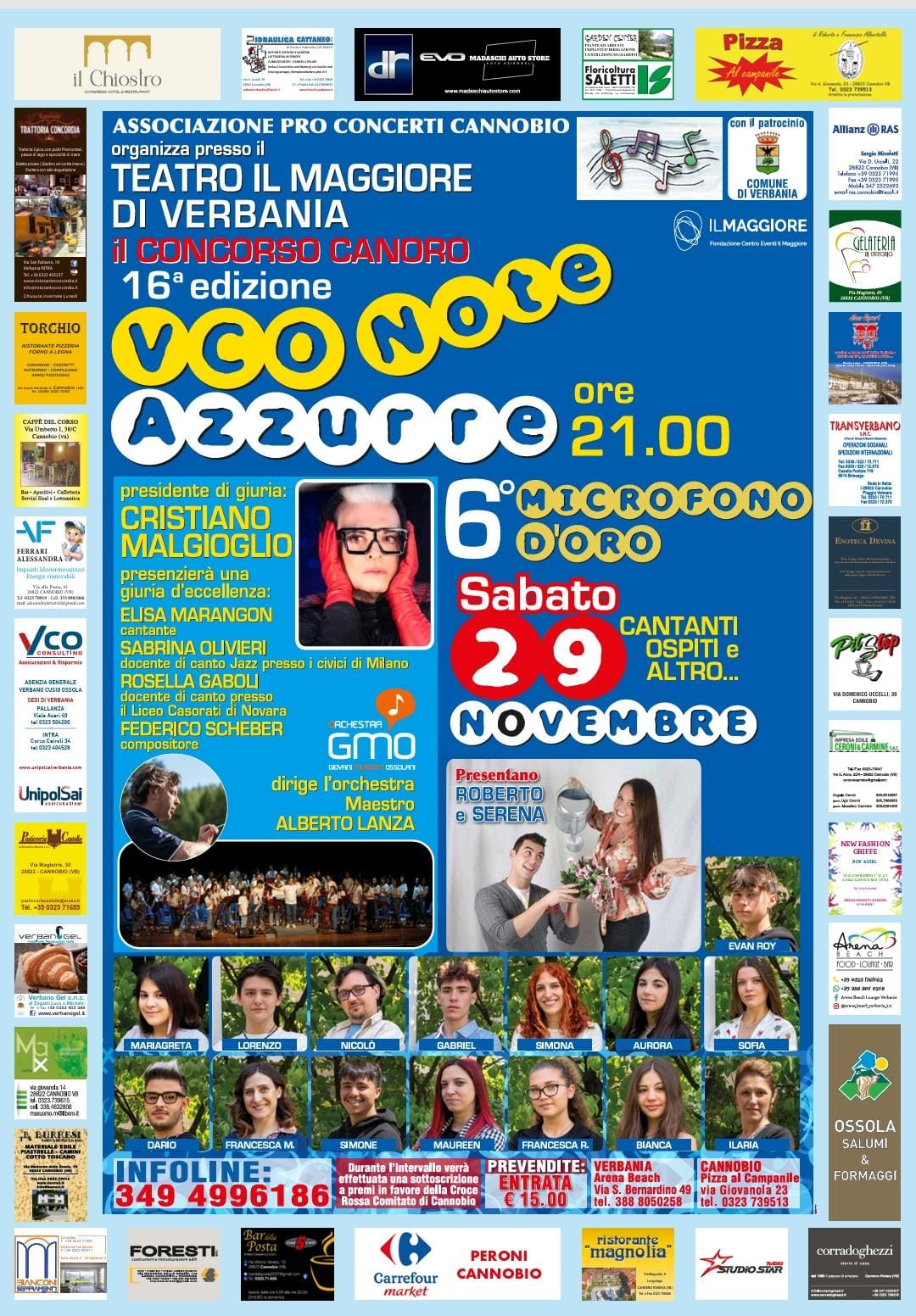 Sabato 29 novembre alle ore 21.00 presso il Teatro Il Maggiore si terrà il Concorso Canoro 2025 “VCO Note Azzurre” (16a ediz.) “6° Microfono d’Oro”