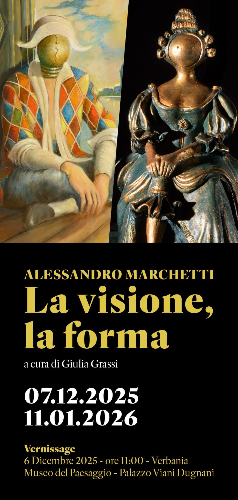 A cura di Giulia Grassi, la mostra La visione, la forma, dedicata ad Alessandro Marchetti, sarà  dal 7 dicembre 2025 all’11 gennaio 2026  e si svolgerà a Verbania (VB) in due sedi: