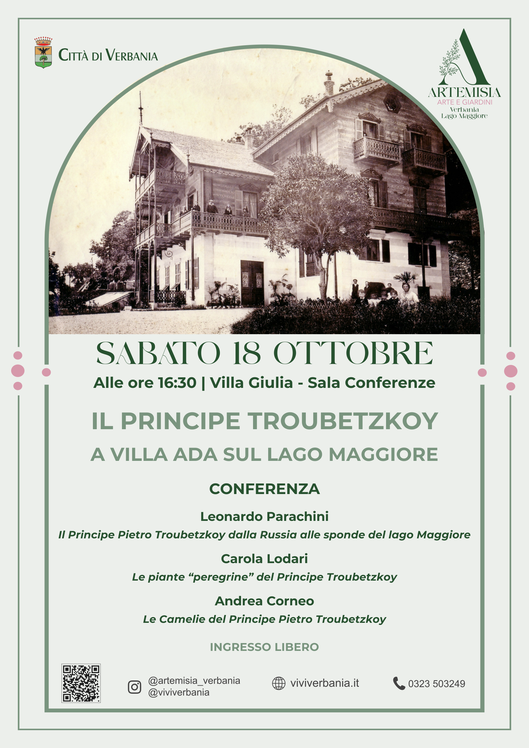 Sabato 18 ottobre 2025 alle ore 16:30 si terrà nell’ambito della Rassegna “Artemisia” la conferenza “Il principe Troubetzkoy a Villa Ada sul lago Maggiore”