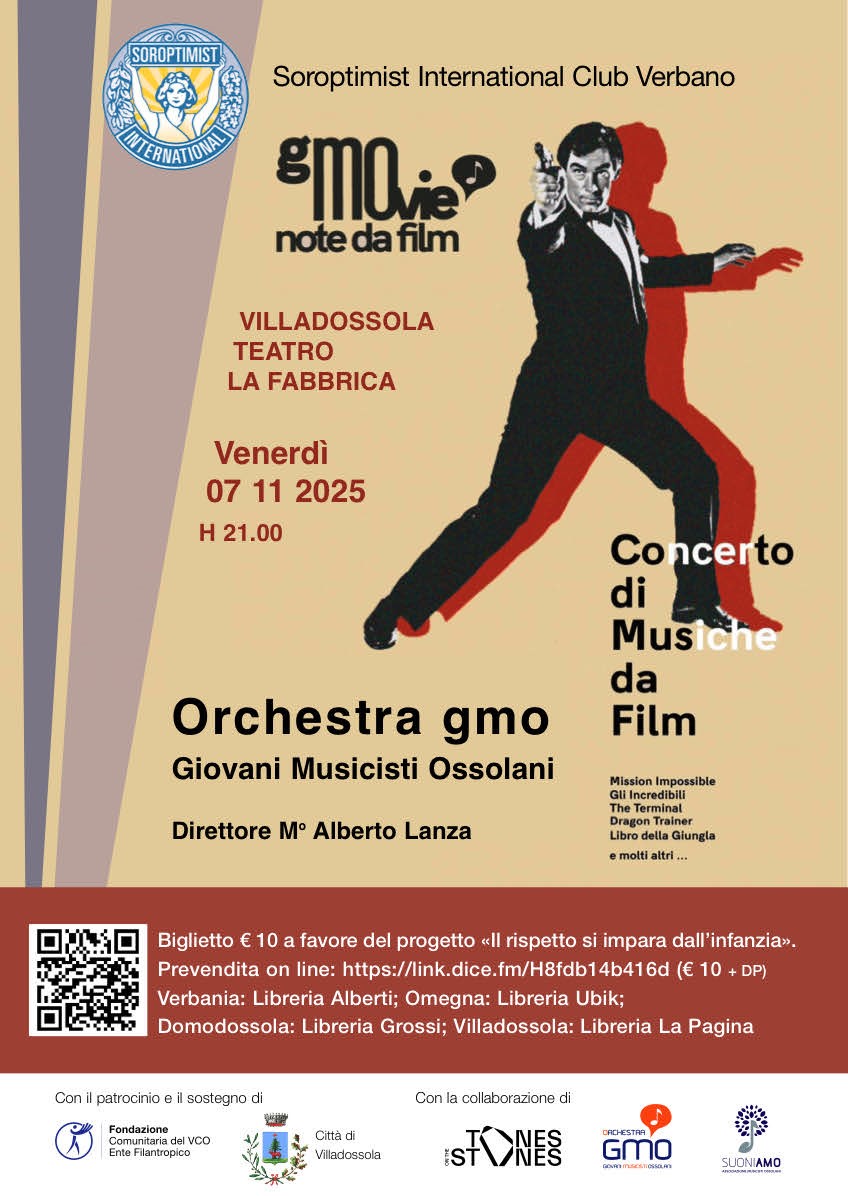 Il Concerto di musiche da film (Mission Impossible, Gli Incredibili, The Terminal, Dragon Trainer, Libro della Giungla e molti altri…) vedrà impegnata l’Orchestra gmo Giovani Musicisti Ossolani con la direzione del M° Alberto Lanza.
