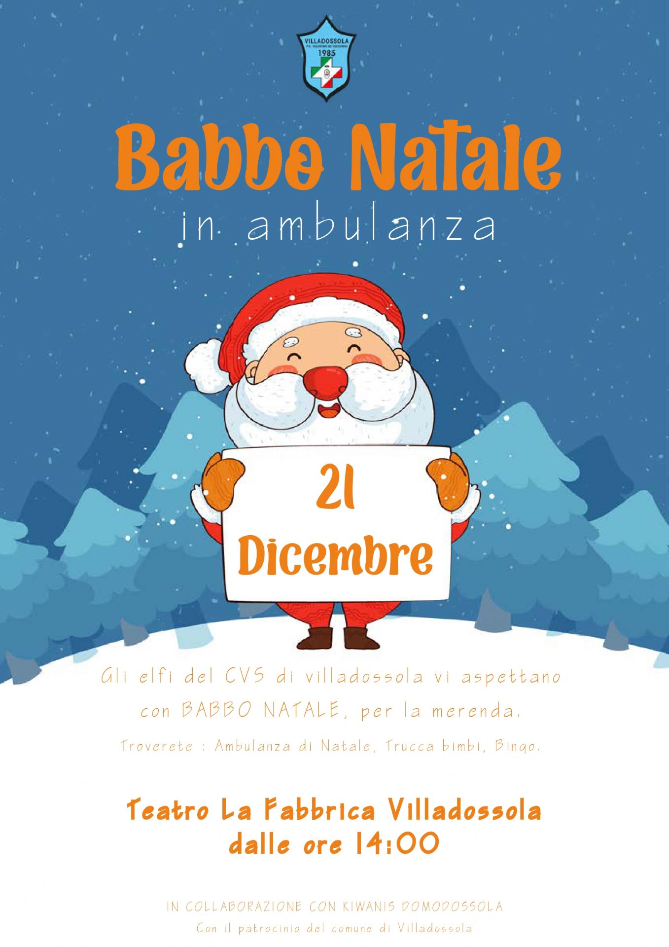 Gli elfi del CVS vi aspettano con Babbo Natale per la merenda con ambulanza di Natale, truccabimbi e Bingo!
