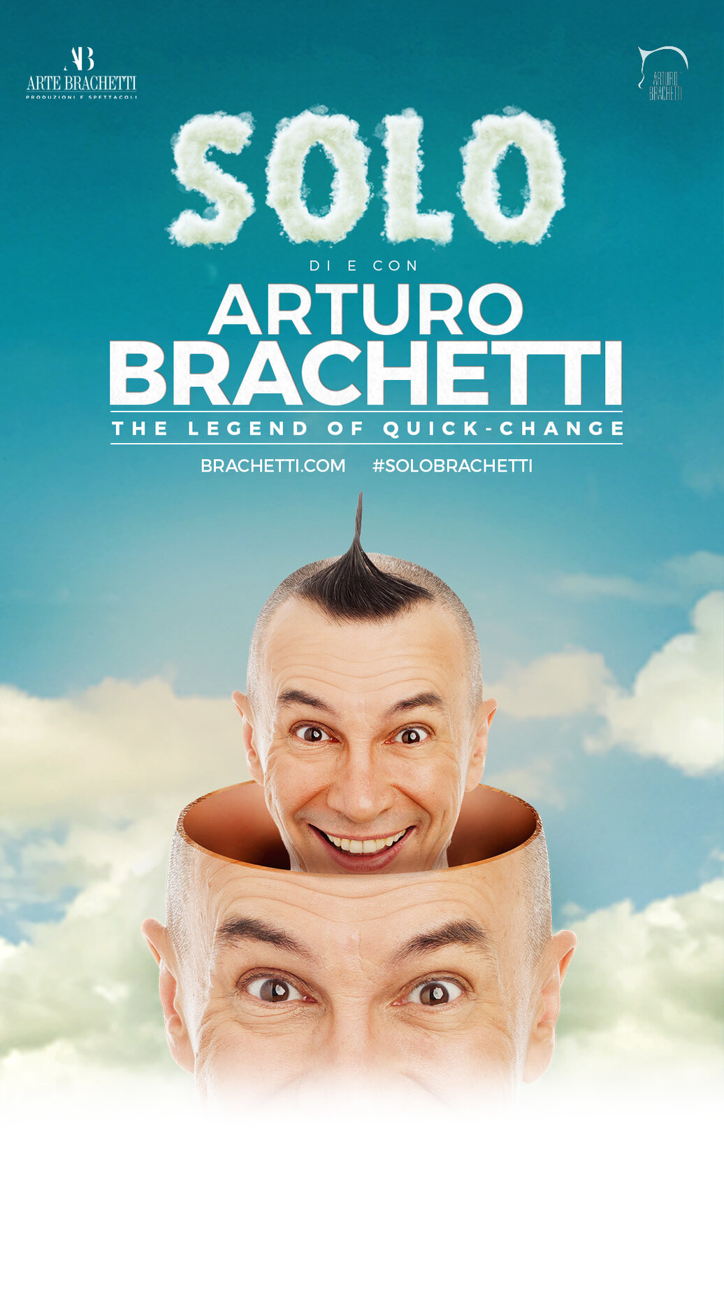 ARTURO BRACHETTI. Famoso e acclamato in tutto il mondo, Brachetti è la leggenda del quick-change, quel trasformismo che lui stesso ha riportato in auge, reinventandolo in chiave contemporanea. La sua carriera comincia a Parigi negli anni 80: da qui in poi la sua carriera è inarrestabile, in un crescendo continuo che lo ha affermato come uno dei pochi artisti italiani di livello internazionale, con una solida notorietà al di fuori del nostro paese. Si è esibito ai quattro angoli del pianeta, in diverse lingue e in centinaia di teatri. Il suo precedente one man show L’uomo dai mille volti è stato visto da oltre 2.000.000 di spettatori. A questo si aggiungono 1.000.000 di spettatori di SOLO.
