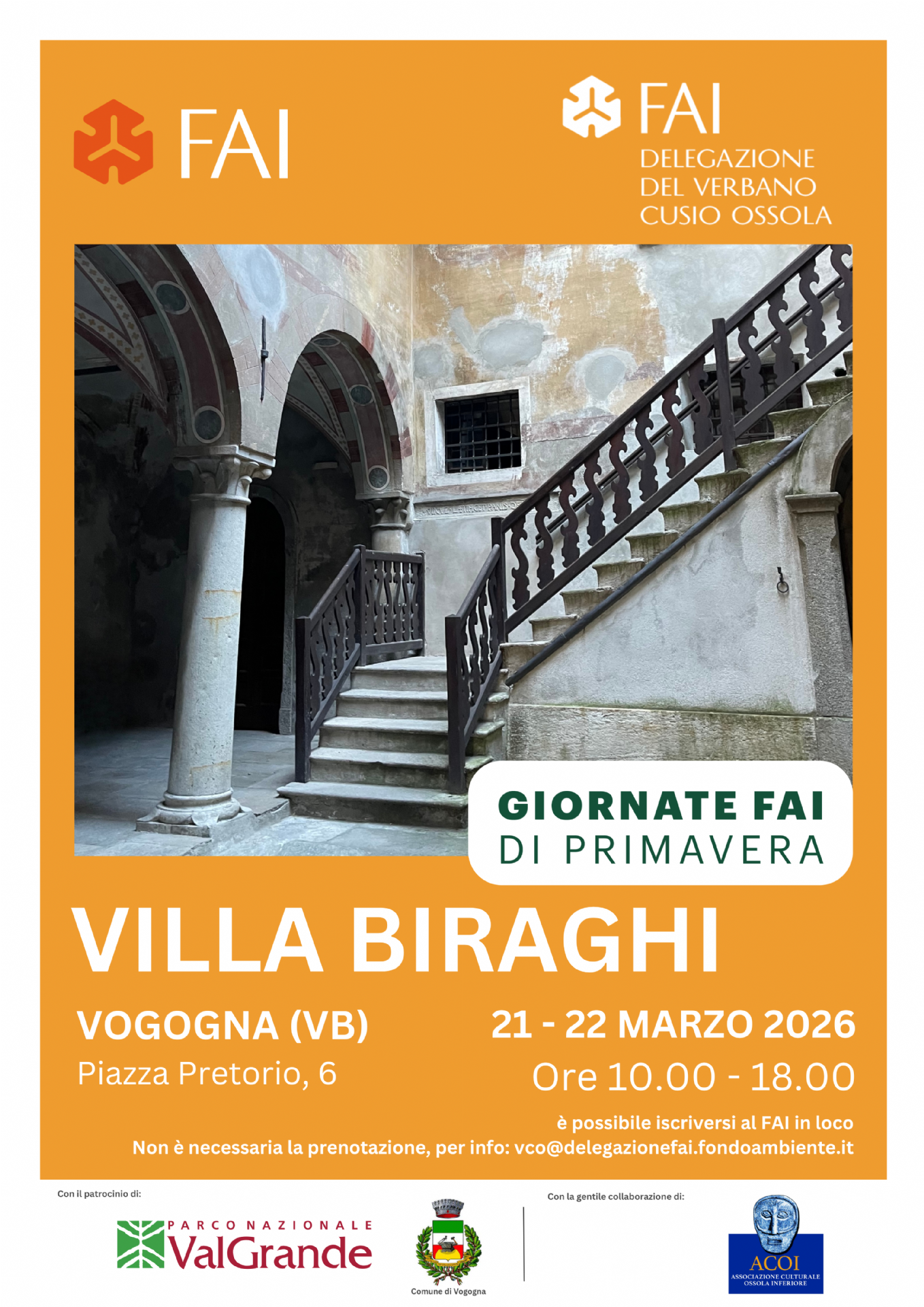 Sabato 21 e domenica 22 marzo 2026 dalle 10:00 alle 18:00 si terranno le GIORNATE FAI DI PRIMAVERA con l’apertura di Villa Biraghi.